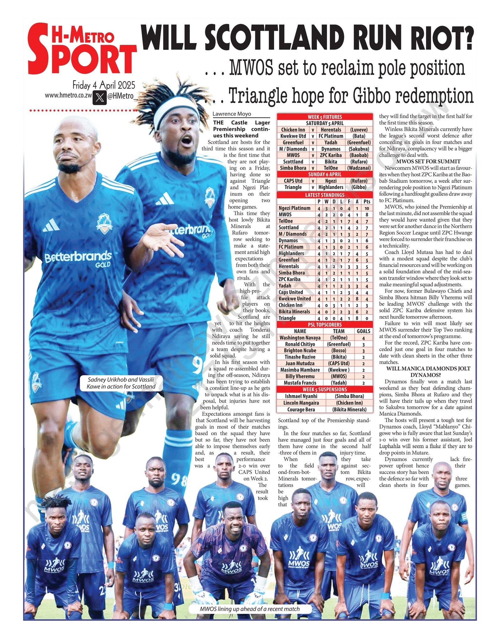 NEWCOMERS Scottland will be desperate to end the poor run of results at their temporary home ground, Rufaro Stadium, when they host traditional giants Highlande...